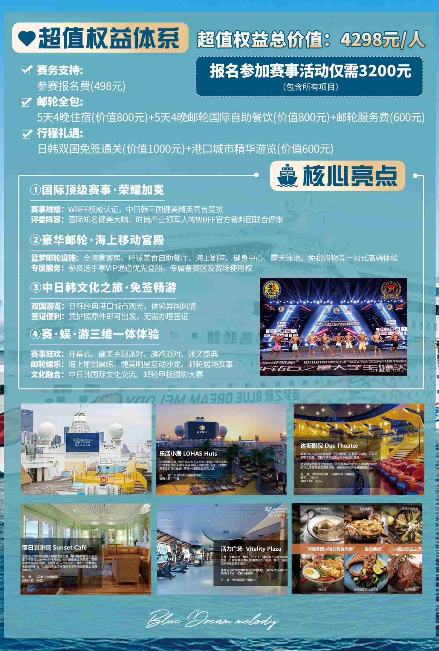【5天4晚豪华邮轮国际赛事·日韩免签畅游】2025蓝梦之歌杯环球钻石先生&比基尼小姐大赛暨中日韩国际健美邀请赛