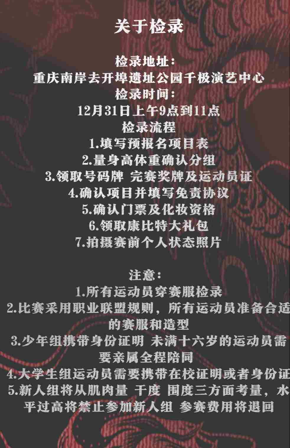 2026年首场健美比赛:2026年聚力健美新人大学生赛(重庆站)
